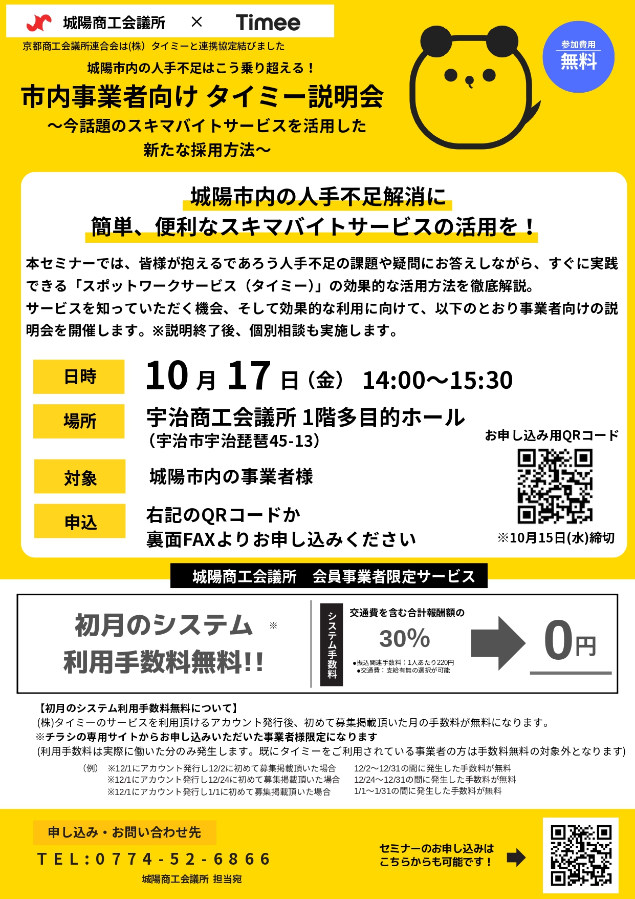 場所:宇治商工会議所 1階多目的ホール(宇治市宇治琵琶45-13)